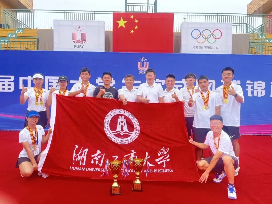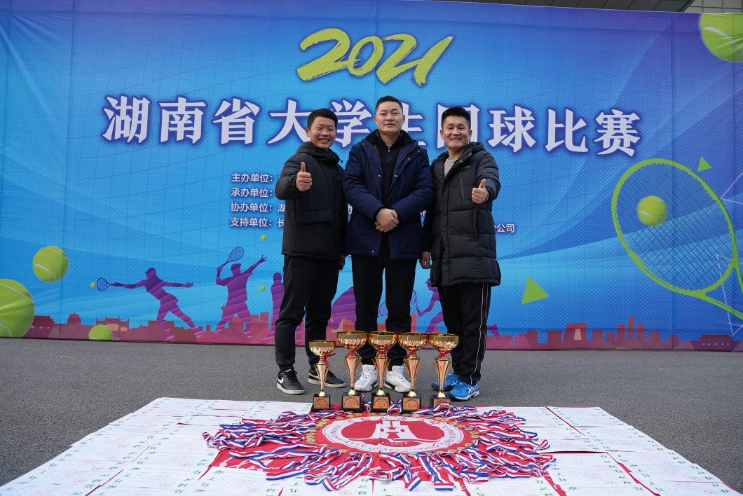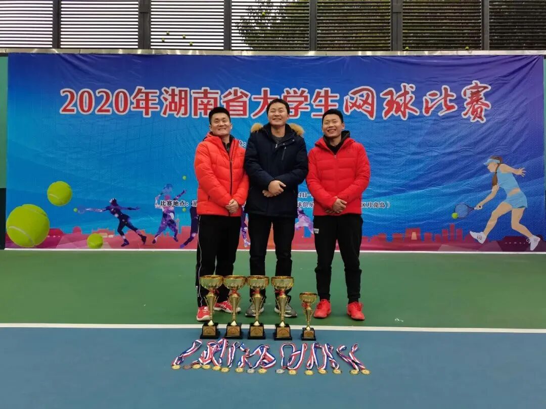 与此同时,他带领这只战队走出湖南、走向全国。取得第26届中国大学生网球锦标赛(华中赛区)甲组男团第3名、女团第4名;第27届赛事中实现突破,斩获甲组混双冠亚军、女子团体亚军等多项荣誉;在首届中国大学生软式网球锦标赛中,更是创下“单届金牌数”纪录,豪取7金包揽甲组全项目冠军,软式网球项目形成“多点开花”优势。线上线下全面开花,在第2届中国大学生网球线上赛中带领网球队获得男子团体二等奖、女子团体三等奖,5项个人一等奖,7项个人二等奖,3项个人三等奖的佳绩。
